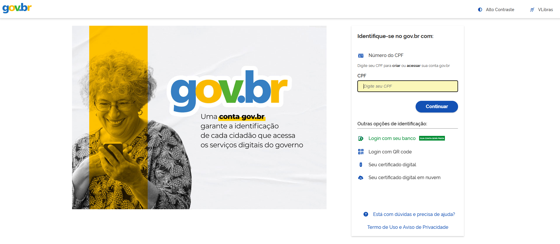 ATENÇÃO: Se o acesso for realizado em um dispositivo público ou compartilhado, como computadores de laboratórios, biblioteca e ambientes similares, é fundamental encerrar a sessão manualmente ao finalizar o uso, clicando em “Sair”. Esse procedimento evita que sua conta permaneça autenticada durante o tempo de sessão do Login Único Gov.br e impede que outra pessoa utilize seu acesso indevidamente. Em dispositivos de uso pessoal, como celular, notebook ou computador particular, esse procedimento não é necessário, salvo se você desejar encerrar a sessão por segurança.